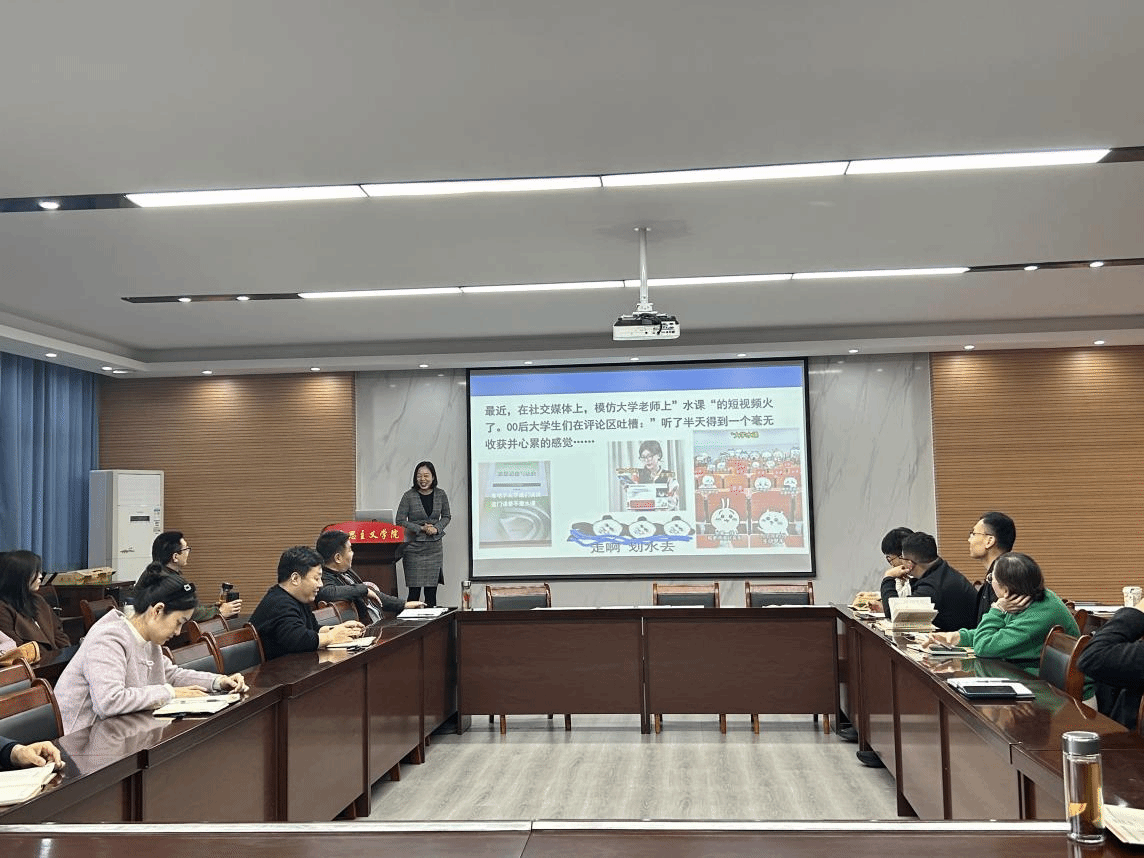为深入贯彻落实新时代思政课建设要求,推动思政课教师教学能力系统性提升,11月11日,马克思主义学院在3511会议室举办“思政课教学技巧创新与实践”系列专题讲座。本次讲座特邀河南省本科高校教师课堂教学创新大赛一等奖获得者吕娜老师主讲,院长李海涛主持,学院全体教师参与。