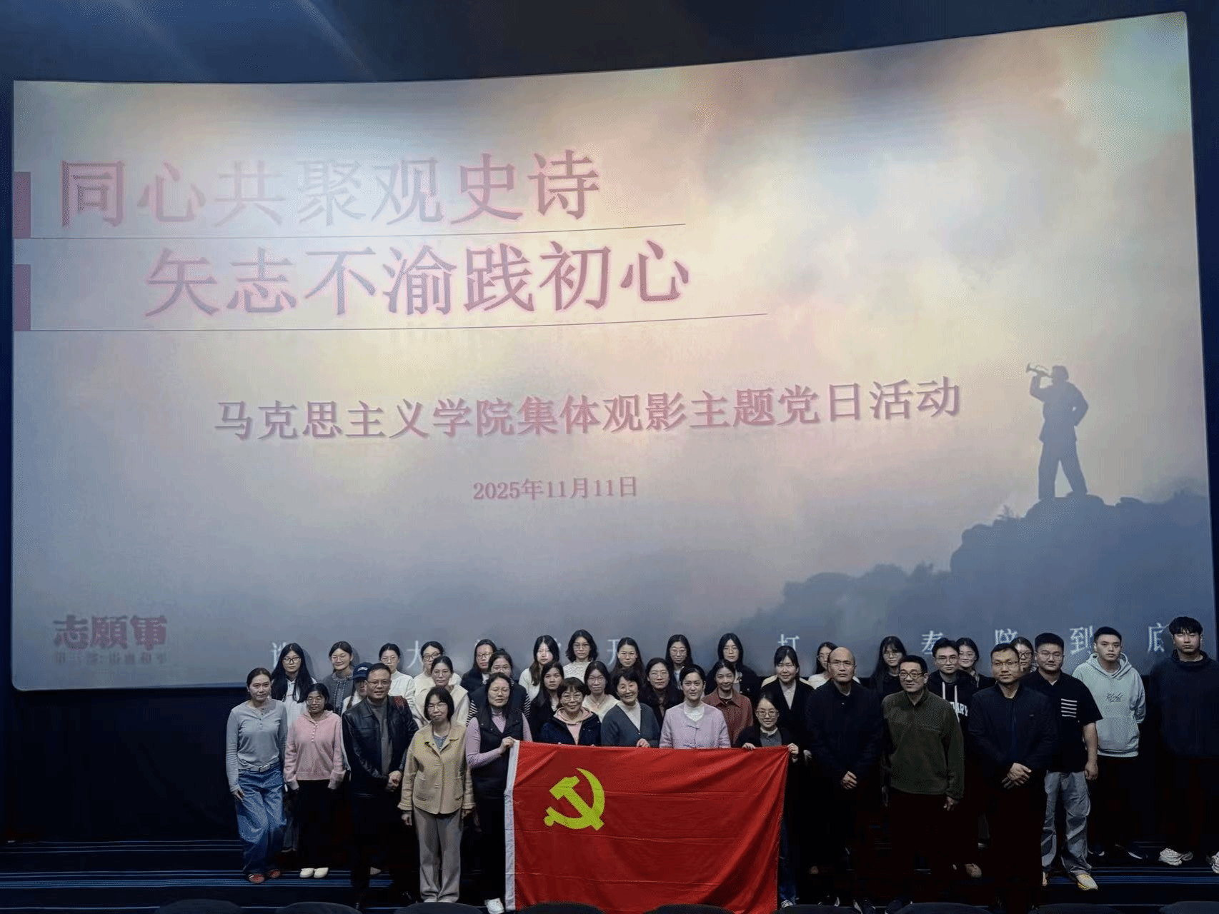 为深入开展党史学习教育,弘扬伟大抗美援朝精神,激发广大师生党员的爱国热情和奋斗激情, 11月11日,马克思主义学院党委组织开展了以“同心共聚观史诗 矢志不渝践初心”为主题的集体观影主题党日活动,学院师生党员共同观看了爱国主义教育影片《志愿军:浴血和平》。