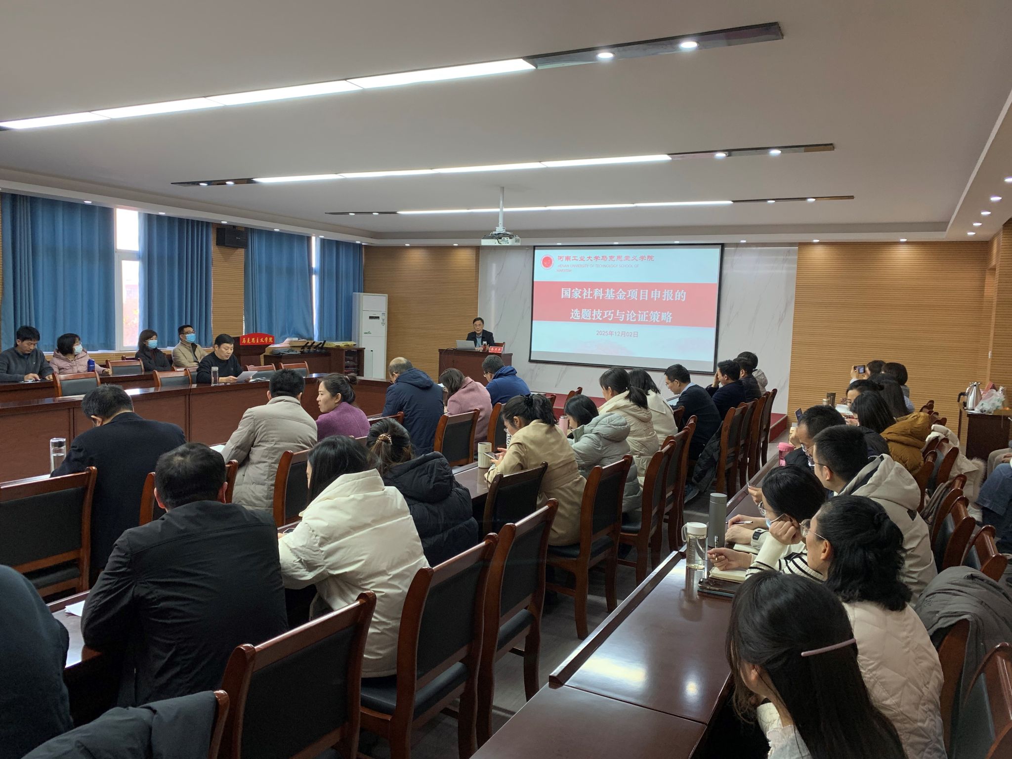 为切实提升马克思主义学院国家社科基金项目申报质量,推动学院国家级项目取得新突破,12月2日,学院在3511会议室举办2026年国家社科基金项目申报辅导会,特邀华东师范大学马克思主义学院齐卫平教授作主题报告。学院教师代表参加了交流学习,会议由院长李海涛主持。