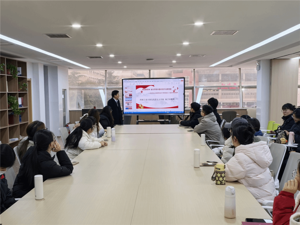 为深入学习贯彻党的二十届四中全会精神,准确把握“十五五”时期国家发展战略部署,12月21日,马克思主义学院在“德园一站式学生社区”举办了党的二十届四中全会精神宣讲进社区活动,马克思主义学院教授杨卫军作了题为《勇担新使命 奋力开拓中国式现代化新局面》的宣讲报告,学院教师代表、硕士研究生聆听了宣讲。报告会由25级研究生班主任刘小飞主持。