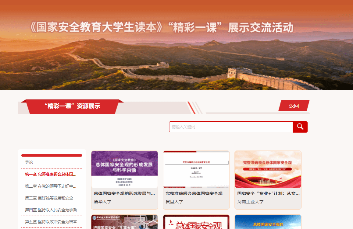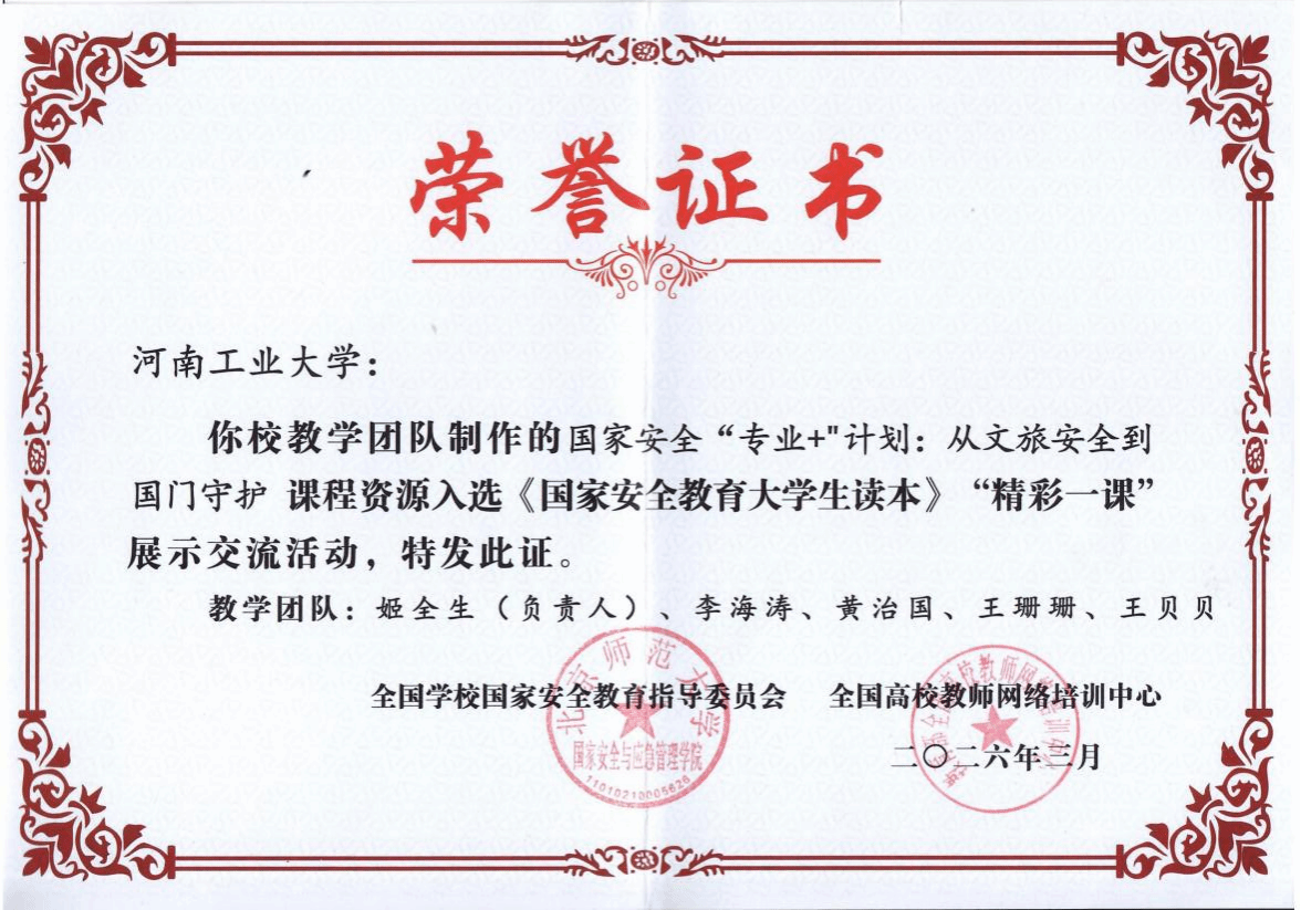 近日,教育部办公厅主办的《国家安全教育大学生读本》“精彩一课”展示交流活动评选结果公布。马克思主义学院报送的《国家安全“专业+”计划:从文旅安全到国门守护》成功入选,现已在全国高校教师网络培训中心、中国大学生在线等国家级教育教学平台上线展播。